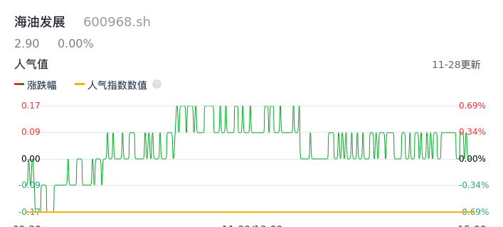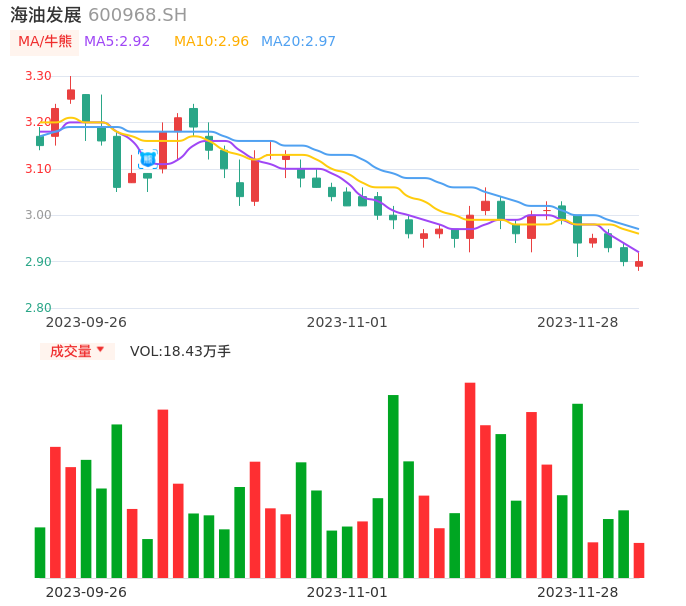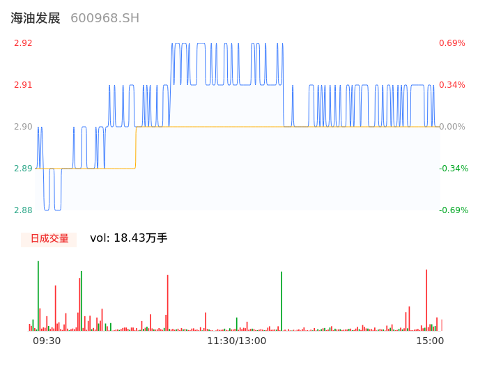11月28日,海油发展收报2.90,股价涨幅0.00%,成交金额5346.72万元,换手率0.18%。