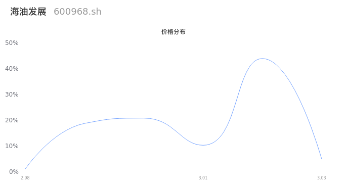 然后我们来看下当日成交的价格分布。经过分析发现,该股票当日成交价格波动低于10个最小波动价位,由于可以参考的样本量非常少,价格分布分析的结果不具有指导意义,下图仅供参考。