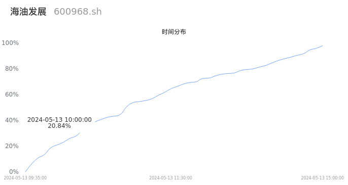 600968海油发展2024年05月13日成交69.13万手,成交金额2.94亿元,相较昨日放量26.21万手,换手率0.68%,成交清淡。