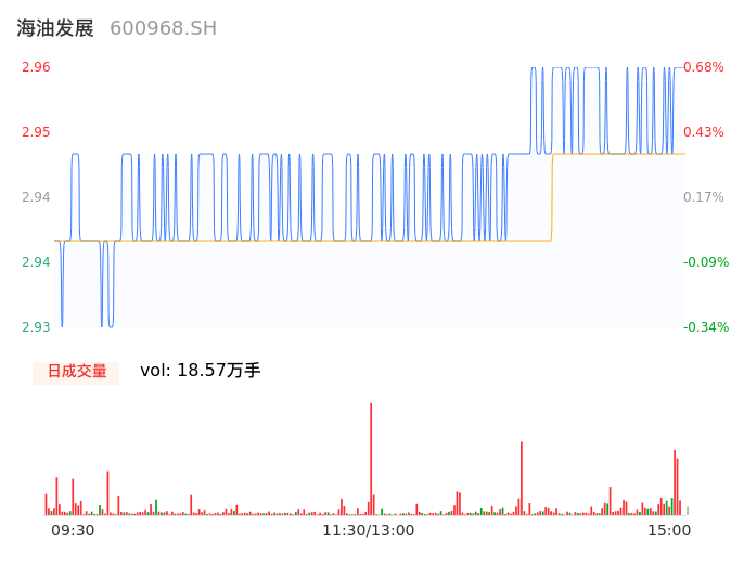 11月23日,海油发展收报2.95,股价涨幅0.34%,成交金额5474.72万元,换手率0.18%。