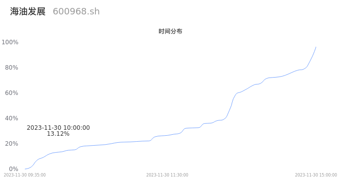 600968海油发展2023年11月30日成交37.83万手,成交金额1.10亿元,相较昨日缩量4.53万手,换手率0.37%,成交清淡。
