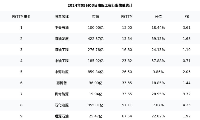 从估值角度看:海油发展最新市盈率PETTM为13.34,在行业内排名2/13,处于59.13分位。