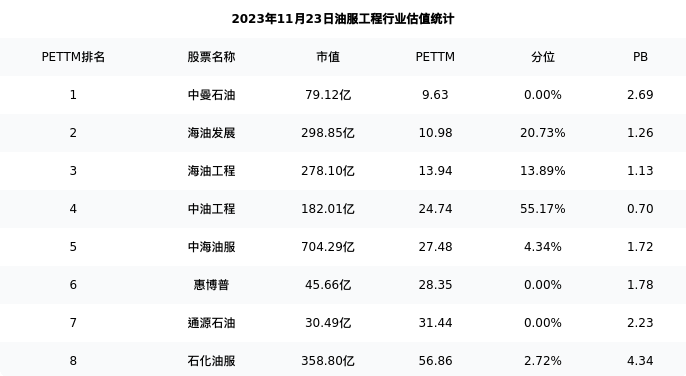 从估值角度看:海油发展最新市盈率PETTM为10.98,在行业内排名2/13,处于20.73分位。