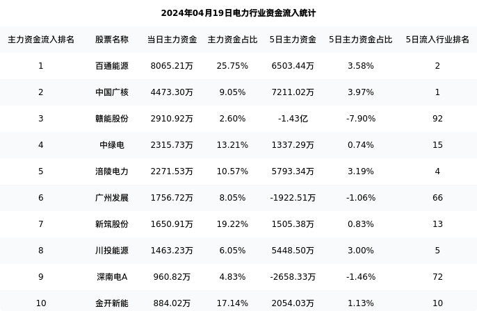 下表为今日行业内流入前10股票的信息