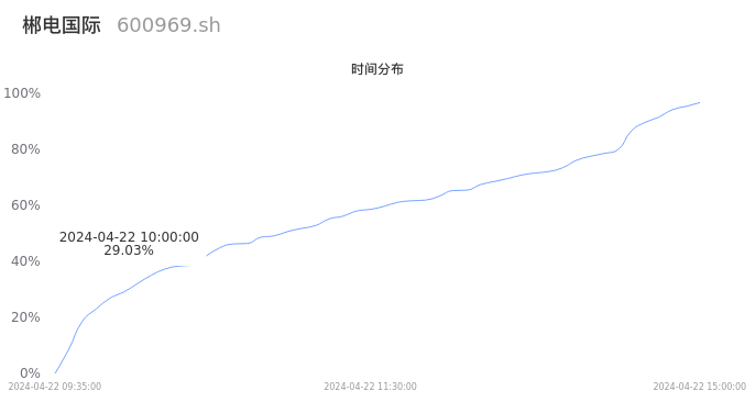 根据成交分布分析,该股票当天缩量成交,成交清淡。时间上看,早盘前半小时成交量占据当天总成交量的29.03%;价格上看,成交呈现左偏峰。成交分布分析主要研究股票成交的分布特性,不具有预测功能,请知悉。
