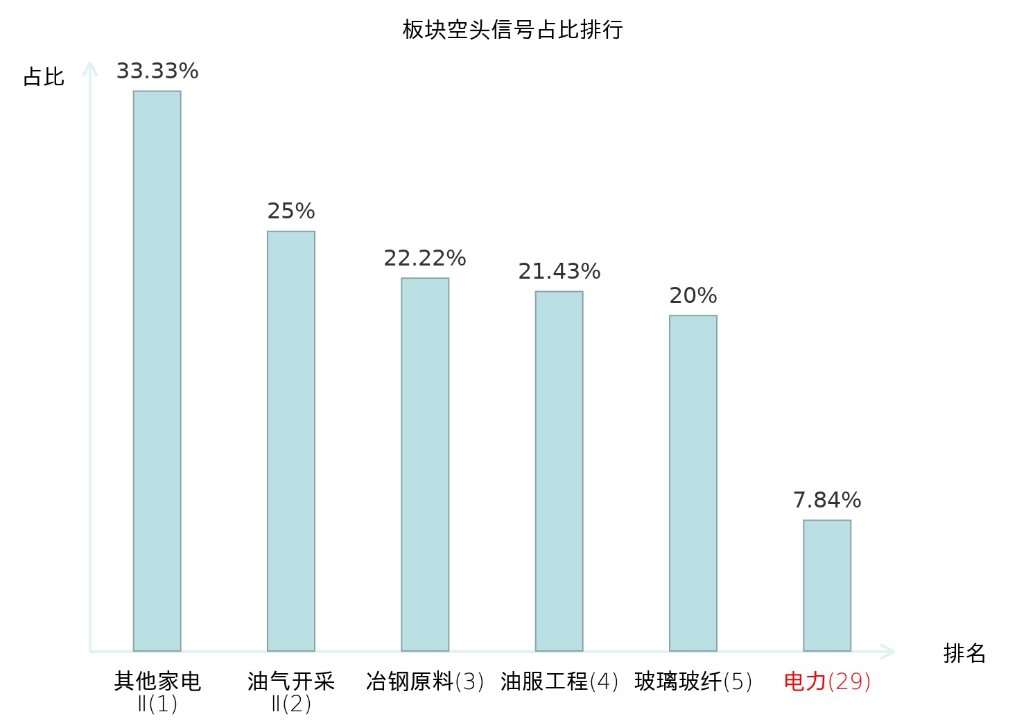 全市场所有行业板块中主力空头信号占比排名中,其他家电Ⅱ板块位居第一。铁路公路板块名次提升最快,较昨日上升113位。