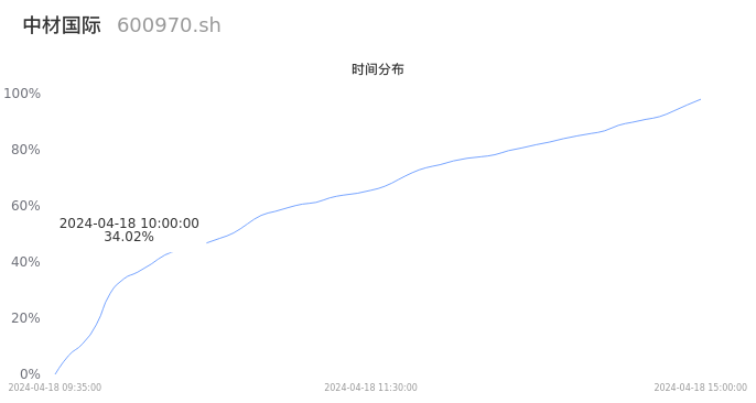 根据成交分布分析,该股票当天缩量成交,成交清淡。时间上看,早盘前半小时成交量占据当天总成交量的34.02%;价格上看,成交呈现中间峰。成交分布分析主要研究股票成交的分布特性,不具有预测功能,请知悉。