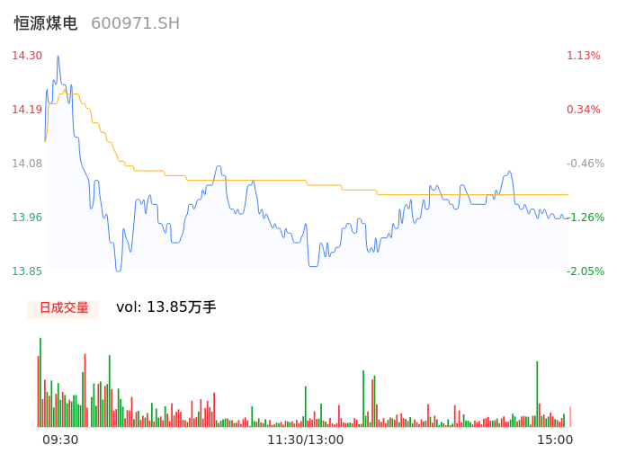 04月18日,恒源煤电收报13.96,股价涨幅-1.27%,成交金额1.95亿元,换手率1.16%。