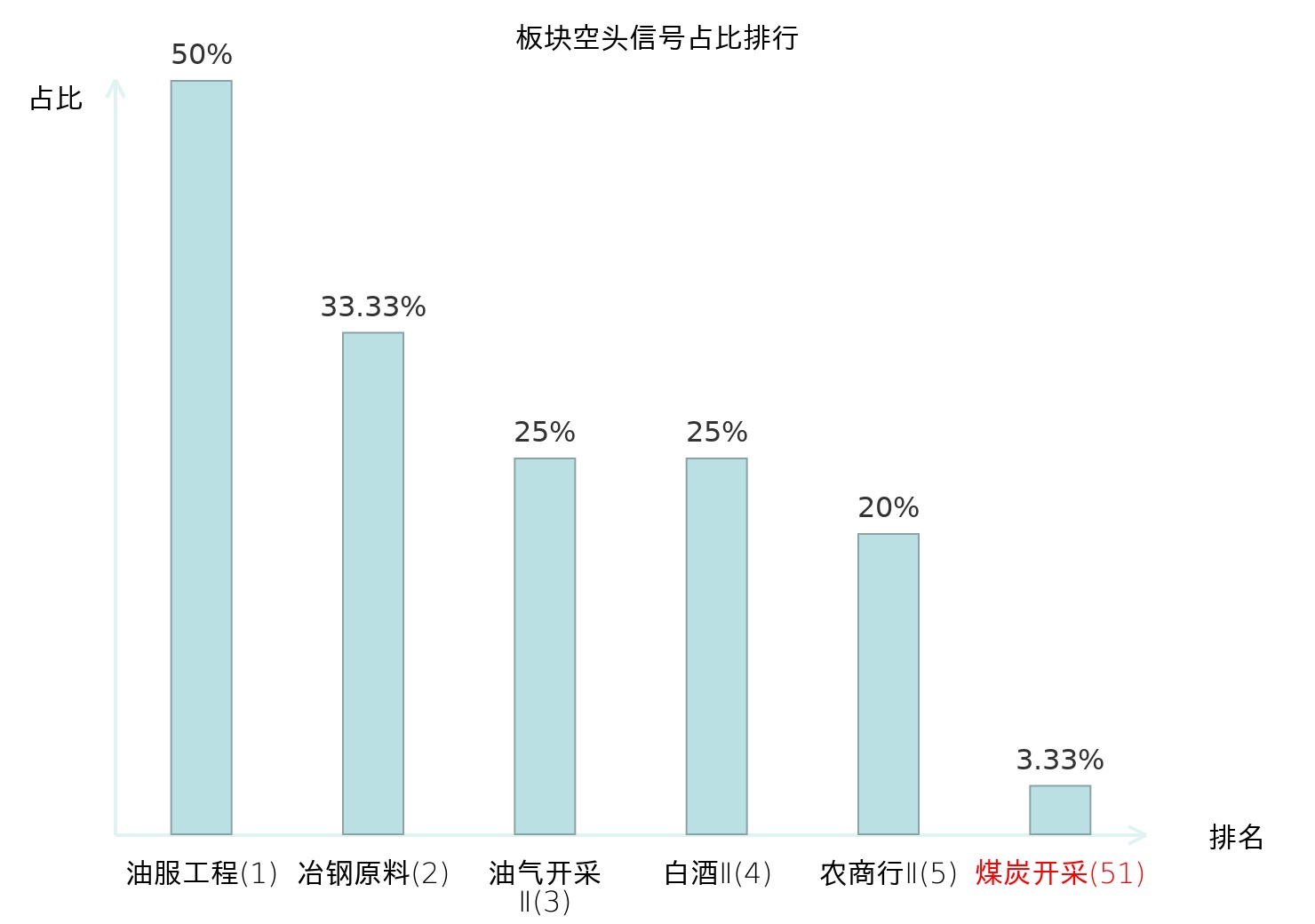 全市场所有行业板块中主力空头信号占比排名中,油服工程板块位居第一。白酒Ⅱ板块名次提升最快,较昨日上升110位。