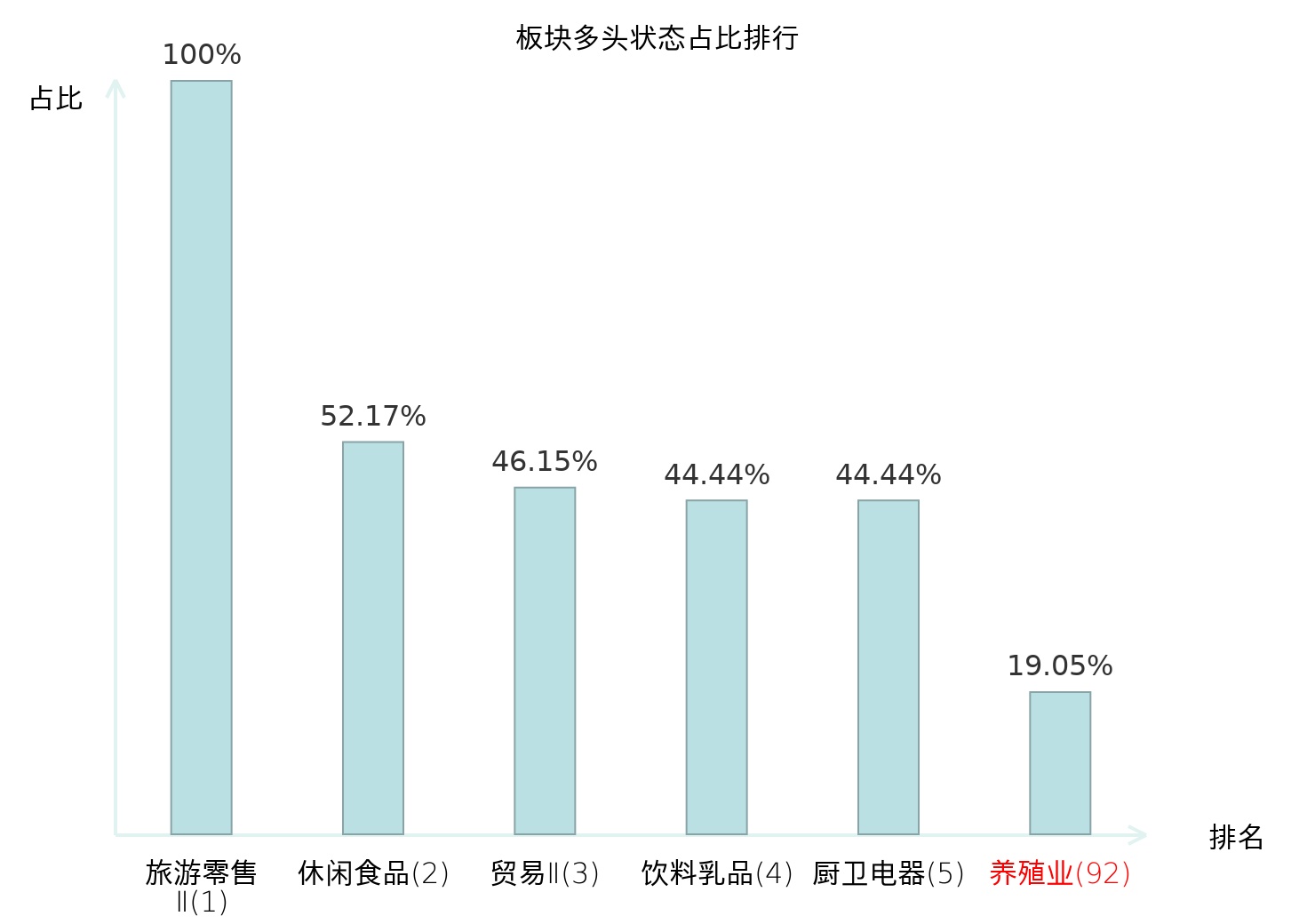 从主力宝信号数据分析,新五丰所属的养殖业板块中共4只股票处于主力多头状态,主力多头状态占比在全行业中排名第92位,较昨日上升12位。排名上升表明主力对该板块的看多意愿有所增强,这对于投资者来说是一个积极的信号。全市场所有行业板块中,旅游零售Ⅱ板块的主力多头状态占比最高,位居第一;乘用车板块名次提升最快,较昨日上升91位。这些变动揭示了不同行业间主力资金动向的变化,为投资者提供了市场趋势的重要参考。