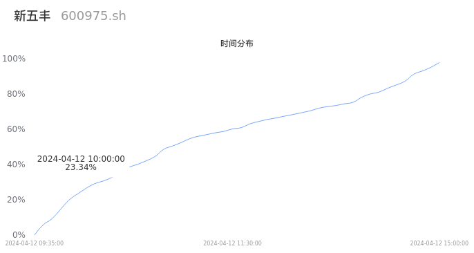 600975新五丰2024年04月12日成交27.86万手,成交金额2.57亿元,相较昨日放量4.36万手,换手率3.22%,成交清淡。