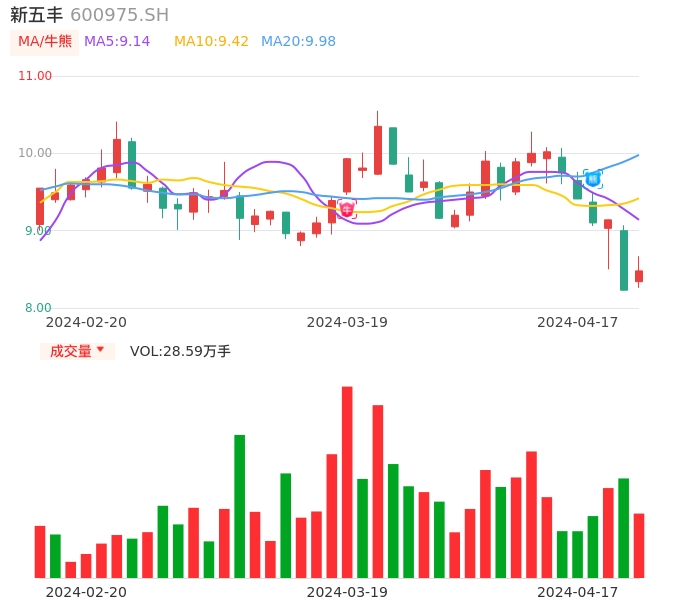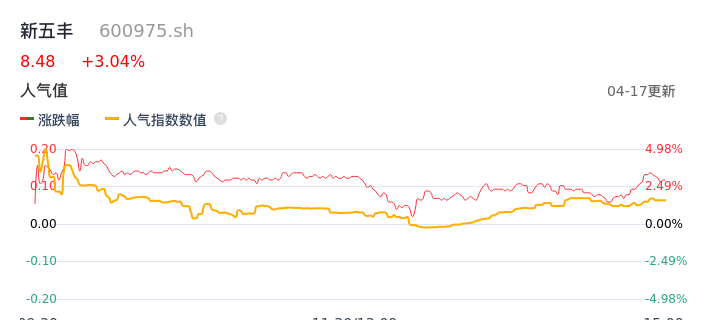 04月17日,新五丰收报8.48,股价涨幅3.04%,成交金额2.42亿元,换手率3.31%。