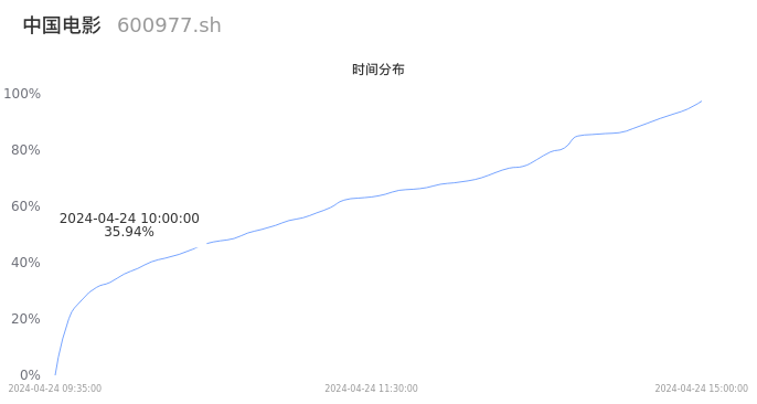 600977中国电影2024年04月24日成交14.12万手,成交金额1.66亿元,相较昨日放量1.12万手,换手率0.76%,成交清淡。