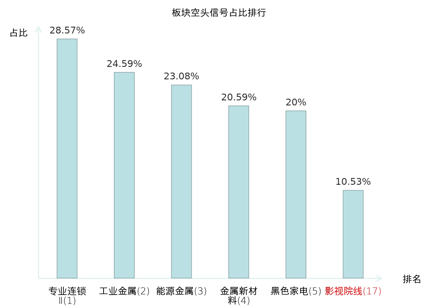 全市场所有行业板块中主力空头信号占比排名中,专业连锁Ⅱ板块位居第一。装修建材板块名次提升最快,较昨日上升120位。