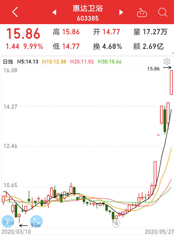 在众多家居用品股中,最抢眼的莫过于惠达卫浴,短短6个交易日内该股已收获5个涨停板。近日,碧桂园创投“围猎”家居建材的投资备受关注,而惠达卫浴便是其投资目标之一。5月20日晚间,惠达卫浴披露定增预案,公司拟向包括碧桂园创投、王惠文、王彦庆和王彦伟等4名特定投资对象,定向增发募资不超过5亿元,用于补充流动资金,其中,碧桂园创投计划认购不超过4.15亿元。