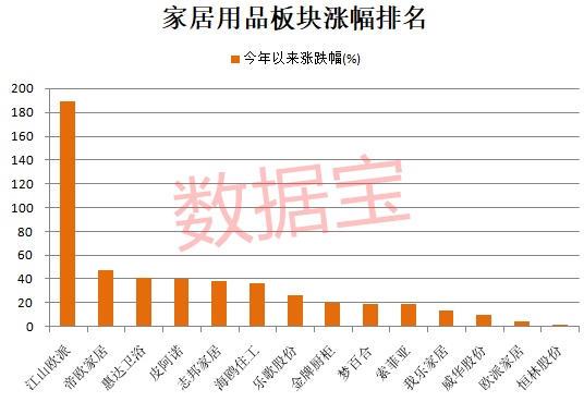 近期大盘走势依旧不温不火,家居用品板块热度上升,板块指数4月以来反弹幅度高达20%以上,江山欧派、帝欧家居今日盘中再创历史新高,两股股价走势俨然慢牛形态,年内涨幅均超过万亿白马贵州茅台。不过家居用品板块内股票走势差异较大,大多数股票仍然处于相对低位区间。