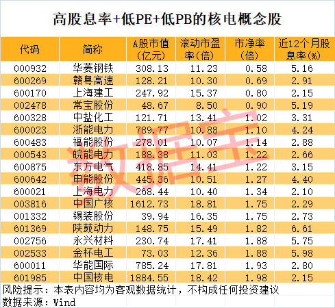 高股息率+低PE+低PB的核电股出炉