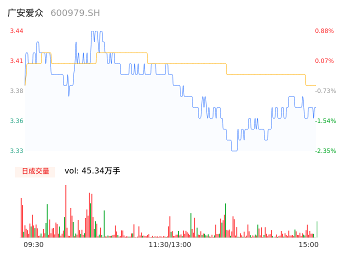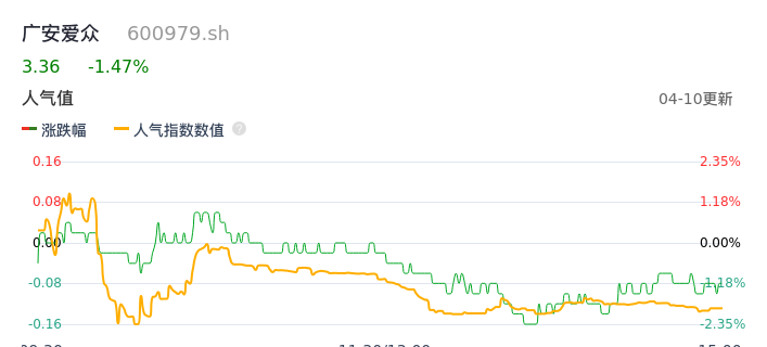04月10日,广安爱众收报3.36,股价涨幅-1.47%,成交金额1.54亿元,换手率3.68%。