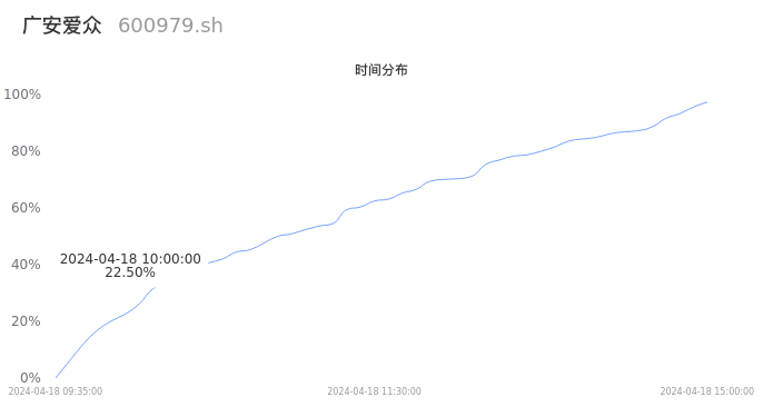 600979广安爱众2024年04月18日成交25.32万手,成交金额8109.08万元,相较昨日缩量6.57万手,换手率2.05%,成交清淡。