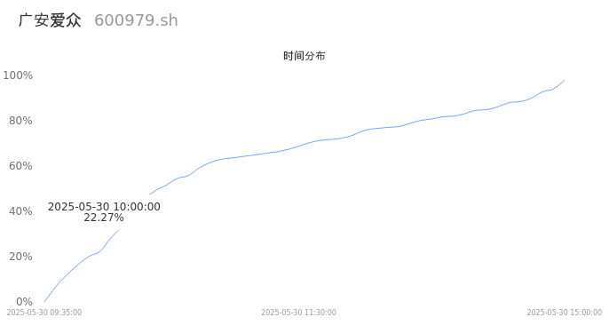 600979广安爱众2025年05月30日成交30.77万手,成交金额1.61亿,相较昨日放量4157手,换手率2.50%,成交清淡。