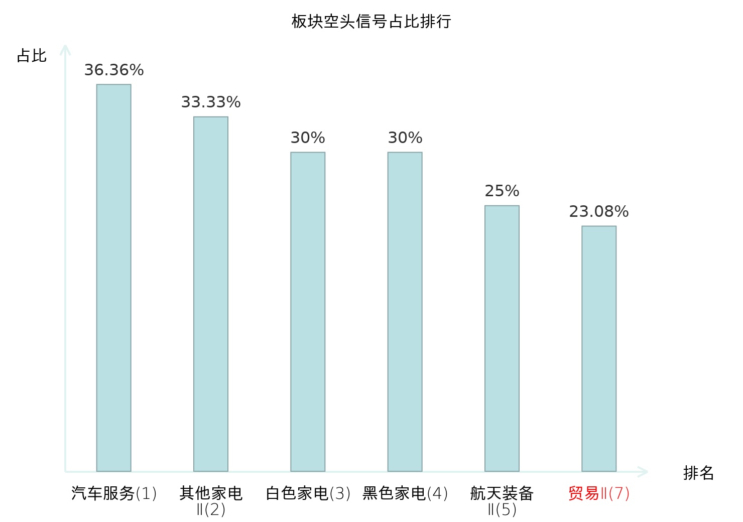 全市场所有行业板块中主力空头信号占比排名中,汽车服务板块位居第一。汽车服务板块名次提升最快,较昨日上升115位。