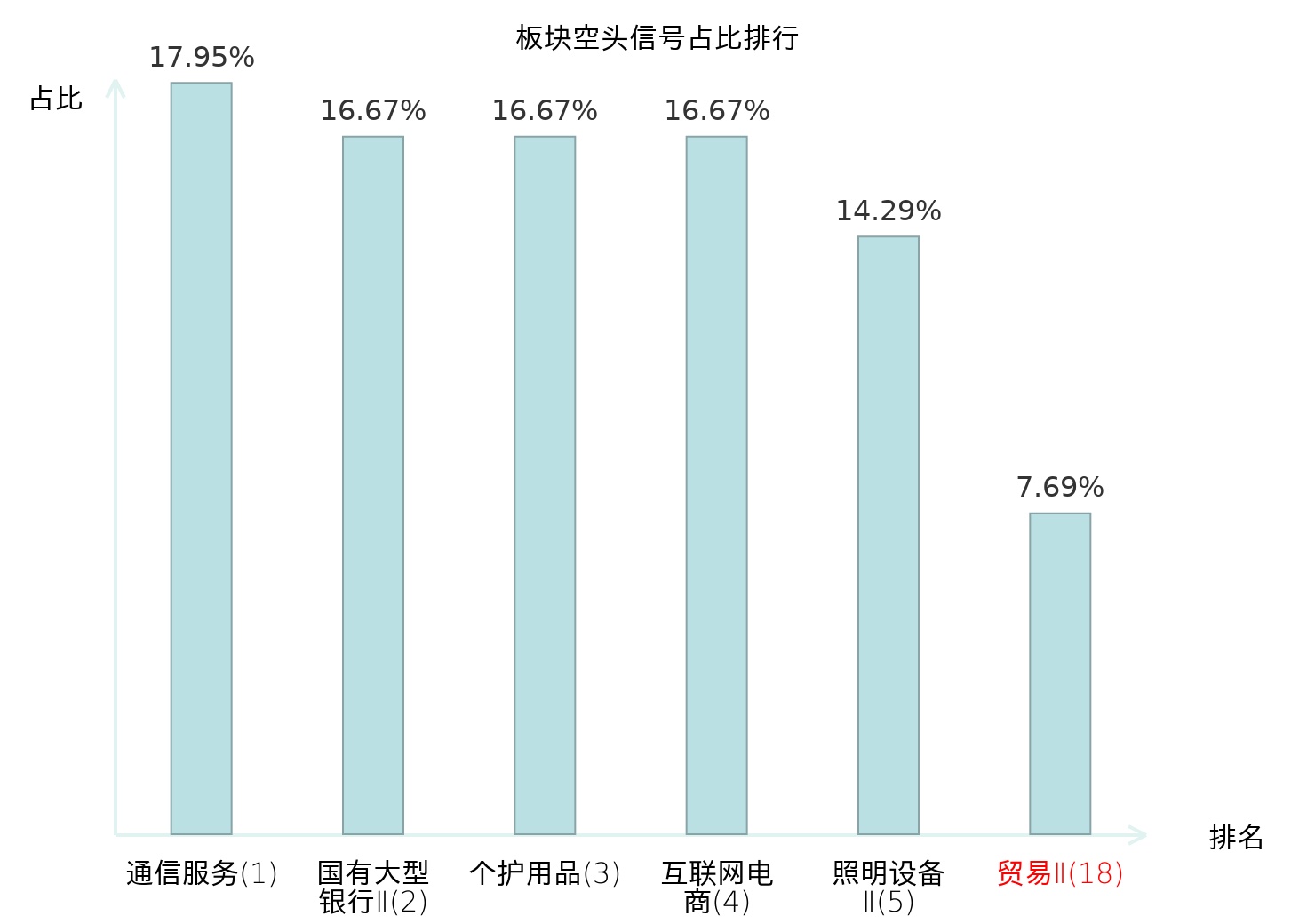 全市场所有行业板块中主力空头信号占比排名中,通信服务板块位居第一。种植业板块名次提升最快,较昨日上升110位。