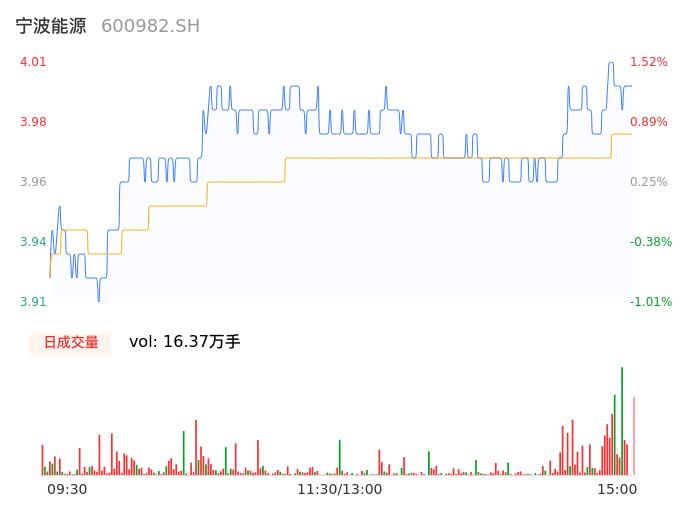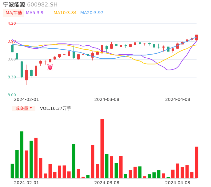 04月08日,宁波能源收报4.01,股价涨幅1.52%,成交金额6516.34万元,换手率1.48%。