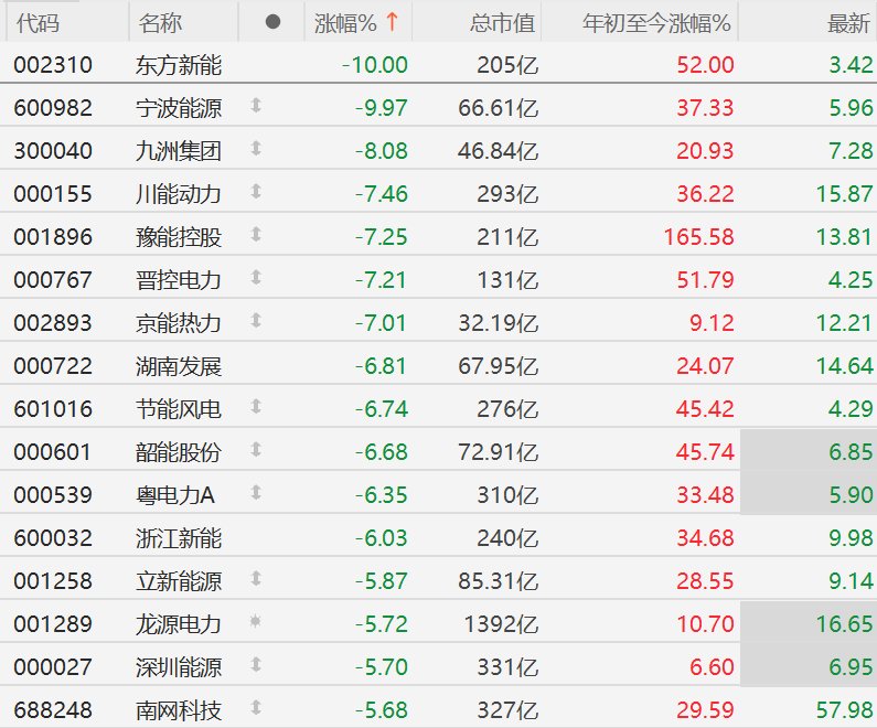 A股电力股跌幅扩大,东方新能、宁波能源跌停