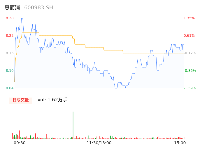 03月26日,惠而浦收报8.20,股价涨幅0.37%,成交金额1319.36万元,换手率0.21%。