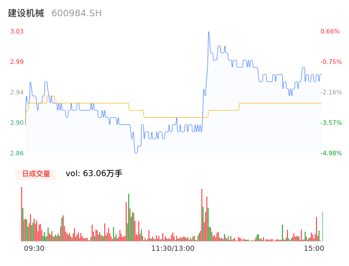 04月24日,建设机械收报2.96,股价涨幅-1.66%,成交金额1.85亿元,换手率5.02%。