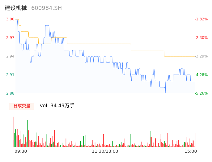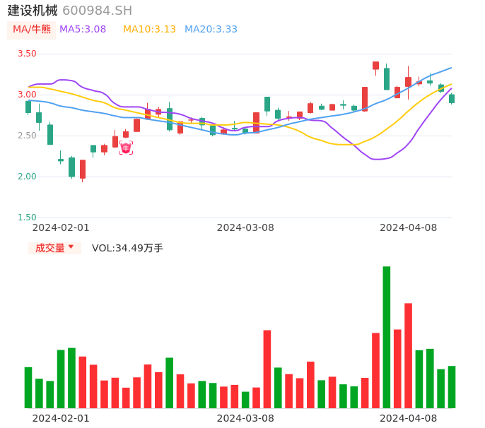 04月08日,建设机械收报2.90,股价涨幅-4.61%,成交金额1.01亿元,换手率2.74%。