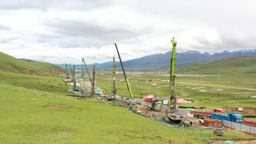 △中联重科旋挖钻机群、起重机等设备在川西高原助建理塘县格者村特大桥