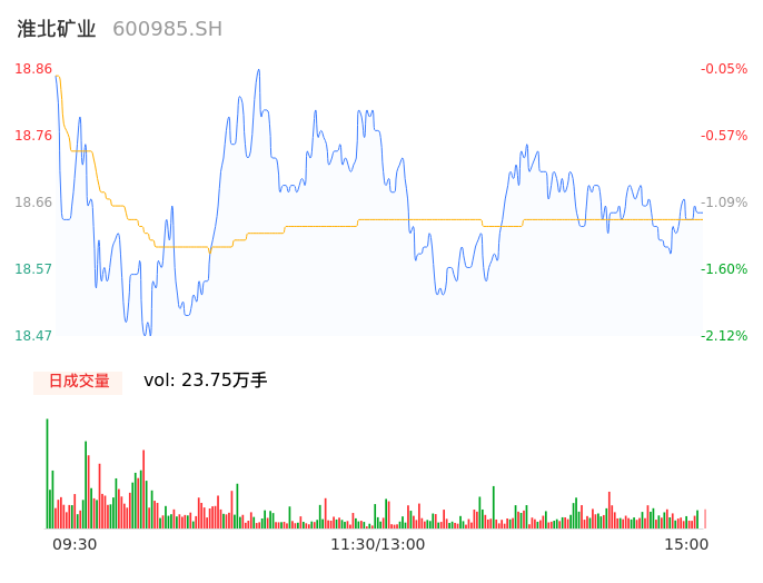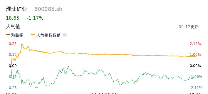 04月12日,淮北矿业收报18.65,股价涨幅-1.17%,成交金额4.43亿元,换手率0.88%。