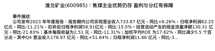 值得注意的是:2024年04月山西证券的胡博/刘贵军分析师,首次发布关于淮北矿业的研究报告,标题为:淮北矿业(600985):焦煤主业优势仍存 盈利与分红有保障。