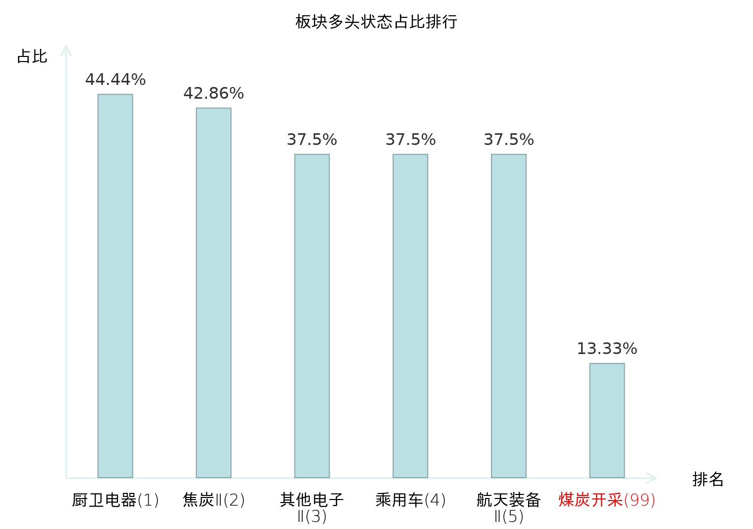 全市场所有行业板块中主力多头状态占比排名中,厨卫电器板块位居第一。元件板块名次提升最快,较昨日上升69位。