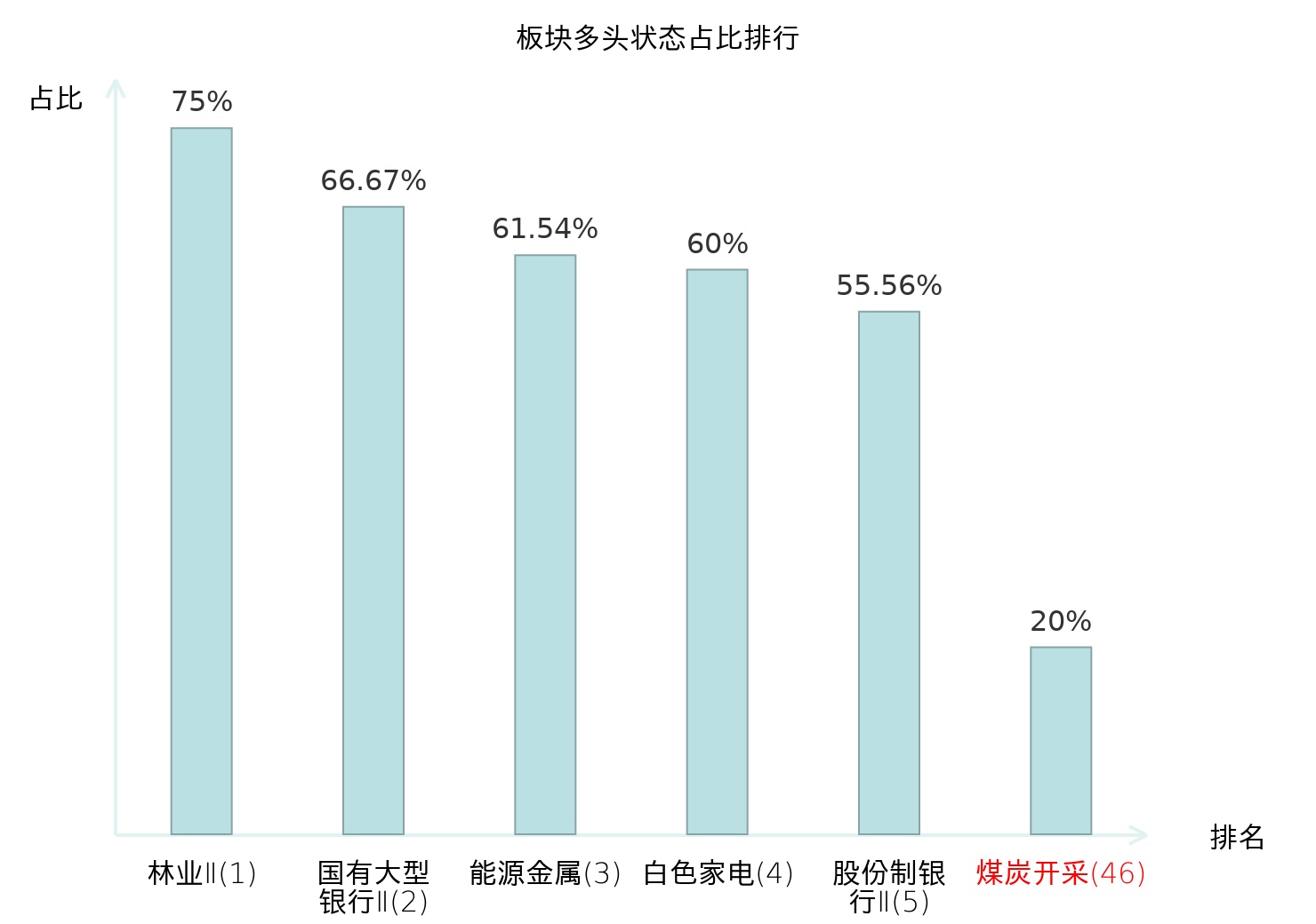 全市场所有行业板块中主力多头状态占比排名中,林业Ⅱ板块位居第一。数字媒体板块名次提升最快,较昨日上升48位。