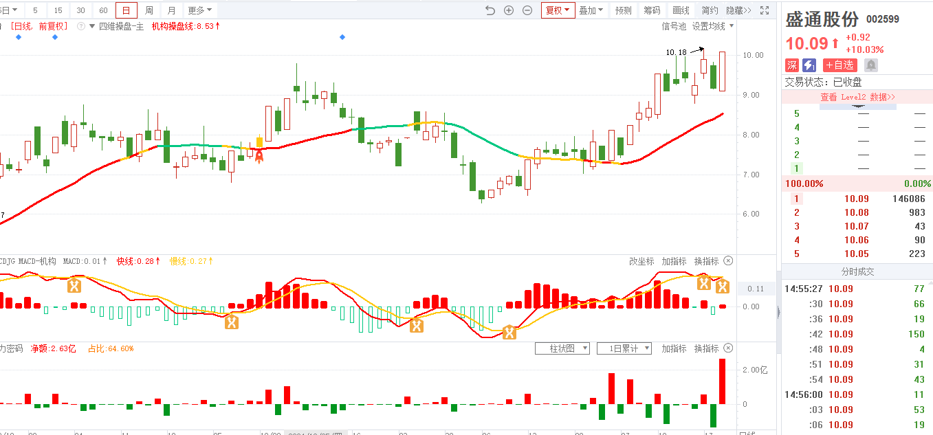 1)盛通股份-四维操盘-近期出现火箭信号且底部量柱由绿转红