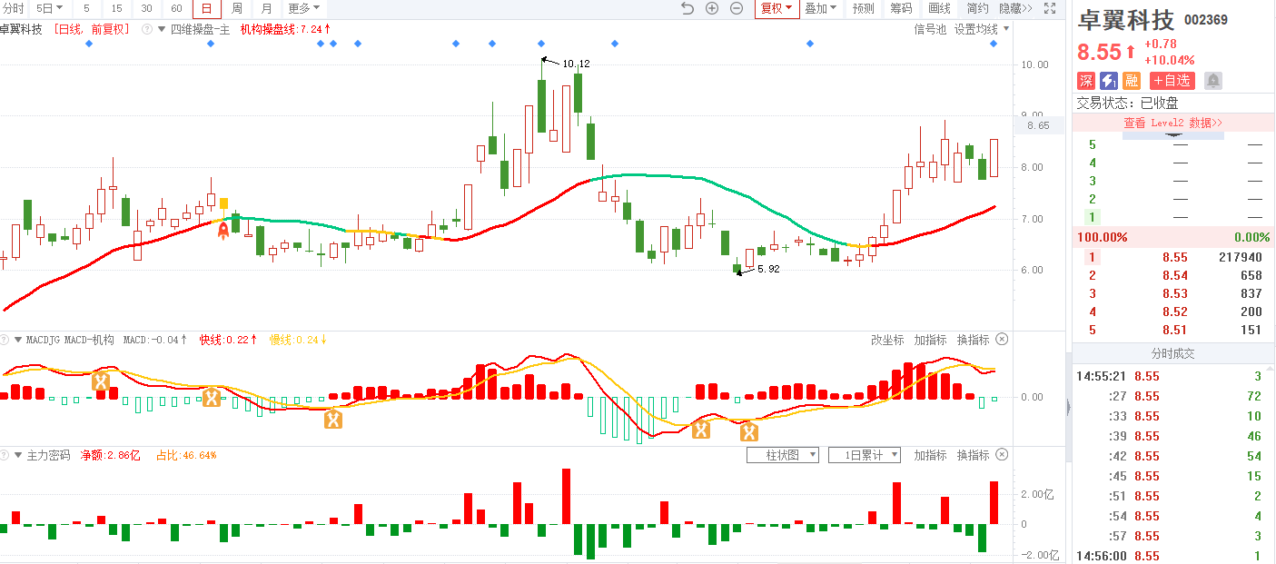 2)卓翼科技-四维操盘-近期出现火箭信号且底部量柱由绿转红