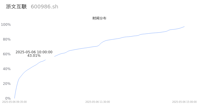 根据成交分布分析,该股票当天放量成交,成交活跃。时间上看,早盘前半小时成交量占据当天总成交量的43.01%;价格上看,成交呈现中间峰。成交分布分析主要研究股票成交的分布特性,不具有预测功能,请知悉。