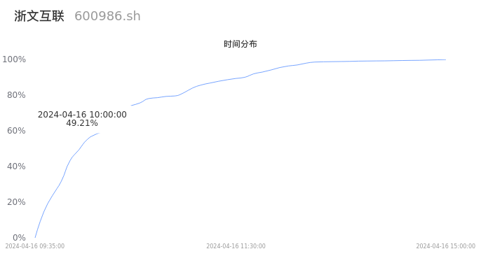 600986浙文互联2024年04月16日成交102.74万手,成交金额4.91亿元,相较昨日缩量54.45万手,换手率7.77%,成交清淡。