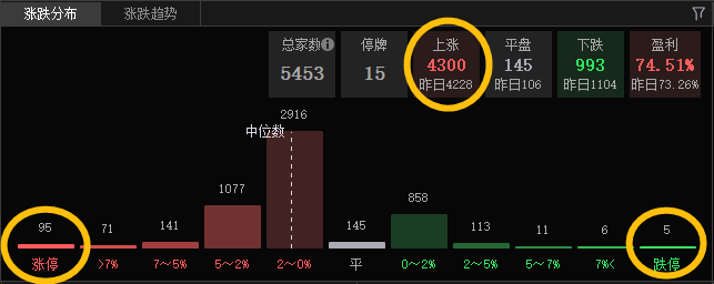 个股表现4300+红盘,连续2天普涨,涨停95只,跌停5只,昨天是指数弱个股强,今天则是指数+个股同步强。但下午有一点需要注意,量能下午萎缩明显,上午还放量1500亿+,下午仅剩800亿,少了一半的增量。由于连续2天普反,明天也有分化的预期,所以下午的缩量也是在预期内的,也有一部分主线方向的资金在提前抢跑。所以不排除明天创业板回补缺口后,再有一个二次下探再企稳。