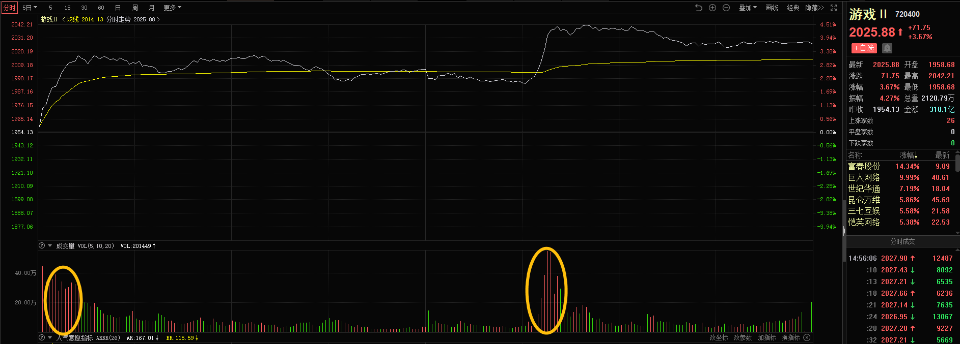 而下午游戏的一波集体异动,算是AI应用的扩散炒作,从前几天的广告营销到今天的游戏还有下午的出版传媒。游戏还有消息面上,欢瑞世纪旗下凤麟互娱主投出品的互动影游《江山北望》11月登录Steam,上线3小时斩获“热门即将推出游戏榜第1名”、“人气蹿升新品第1”、“全区销量榜第8名”的助攻,而出版传媒下午浙文互联快速拉升再到人民网涨停,也带动了传媒这块的个股,总之都是AI应用的横向挖掘。不过下午拉升游戏传媒,反观营销这边的趋势个股易点天下、蓝色光标、三六零都是回落的。这波AI应用的炒作情绪整体太明牌了,所以跟风盘比较多,昨天情绪算是一次高潮后,这里正常要分化一下,震荡一下再情绪回归一致做多。下午这几个趋势中军的回落,一方面是资金主动分歧兑现,一方面是等阿里晚间的财报消息,所以明天可以看看是否是低吸的机会。