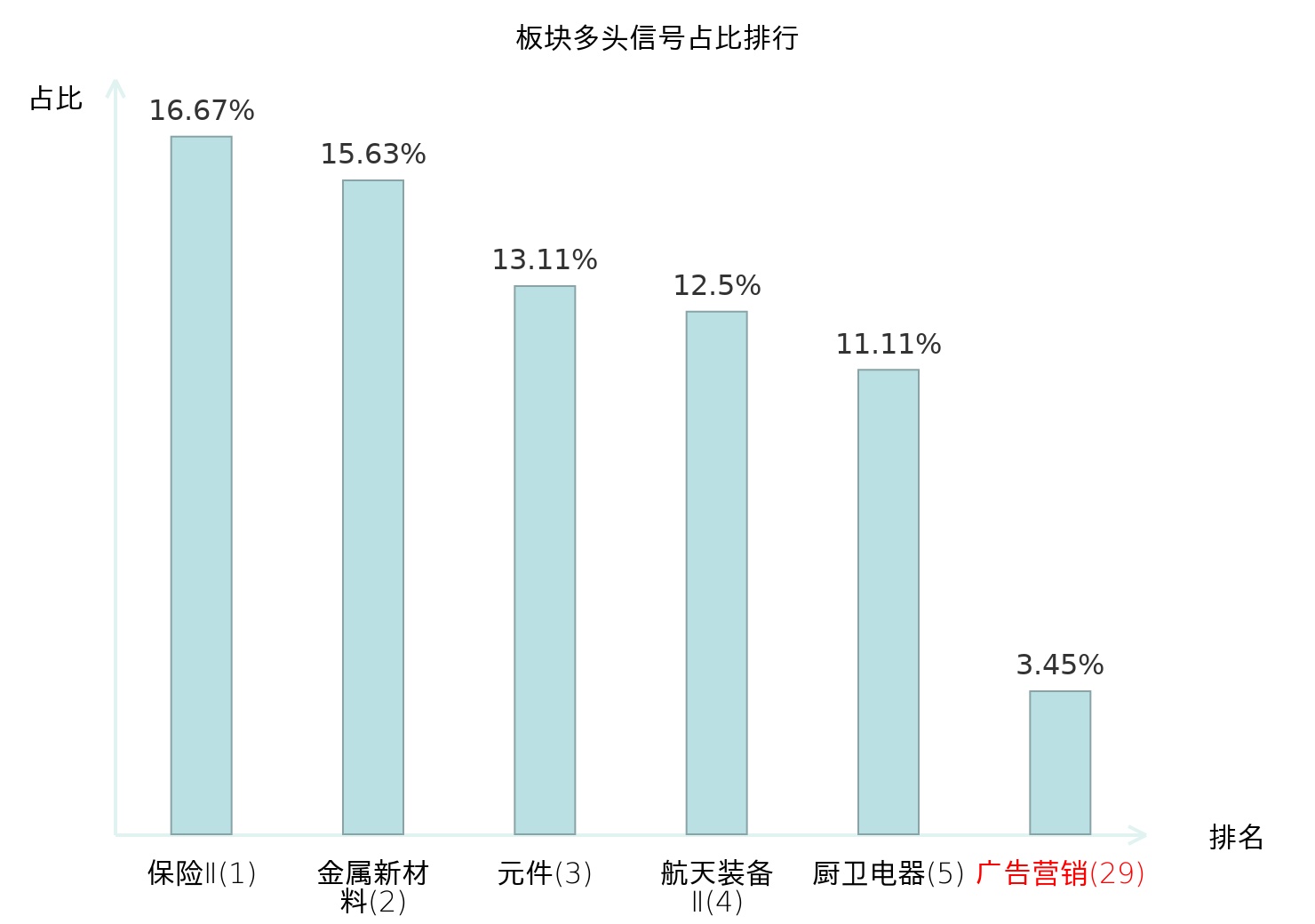 从主力宝信号数据分析,浙文互联所属的广告营销板块中共1只股票发出主力多头信号,主力多头信号占比在全行业中排名第29位,较昨日上升54位。排名上升显示出主力对该板块的买入兴趣增强,为投资者提供了积极的市场情绪参考。全市场所有行业板块中主力多头信号占比排名中,保险Ⅱ板块位居第一,该板块名次提升最快,较昨日上升123位。这些变动揭示了不同行业间主力资金动向的趋势,为投资者提供了关于市场偏好和潜在投资机会的重要线索。