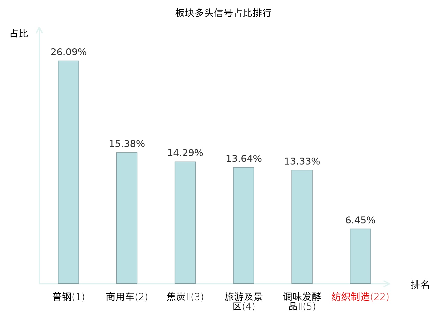 全市场所有行业板块中主力多头信号占比排名中,普钢板块位居第一。焦炭Ⅱ板块名次提升最快,较昨日上升119位。