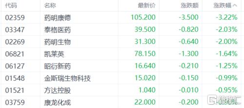 医药外包概念股下挫,药明康德跌超3%,泰格医药药明生物凯莱英昭衍新药金斯瑞生物科技等跟跌。