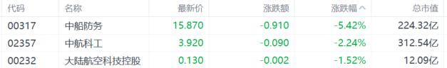 军工股熄火,中船防务跌超5%,中航科工跌超2%。消息面上,美国总统特朗普今日与日本首相高市早苗通电话,电话会谈由美方提议进行。