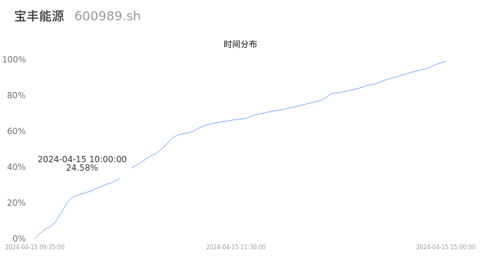 600989宝丰能源2024年04月15日成交30.78万手,成交金额5.27亿元,相较昨日放量13.79万手,换手率0.42%,成交清淡。