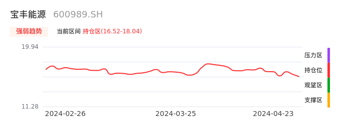 04月23日,宝丰能源收报16.53,股价涨幅-1.37%,成交金额4.22亿元,换手率0.35%。