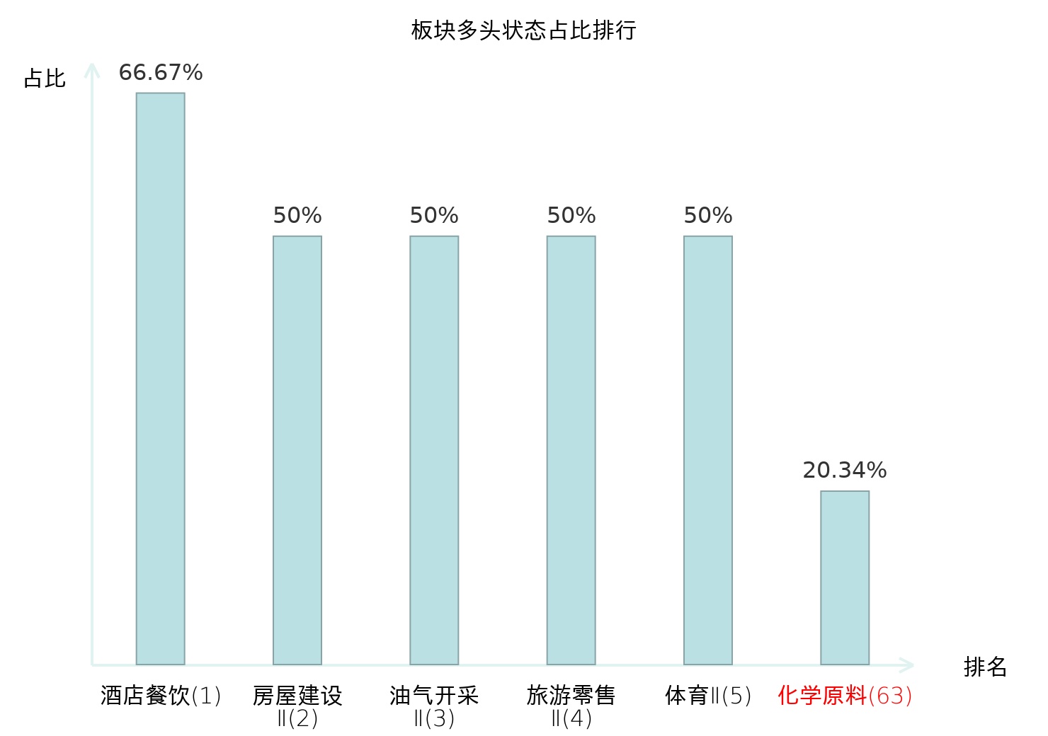 全市场所有行业板块中主力多头状态占比排名中,酒店餐饮板块位居第一。农商行Ⅱ板块名次提升最快,较昨日上升50位。