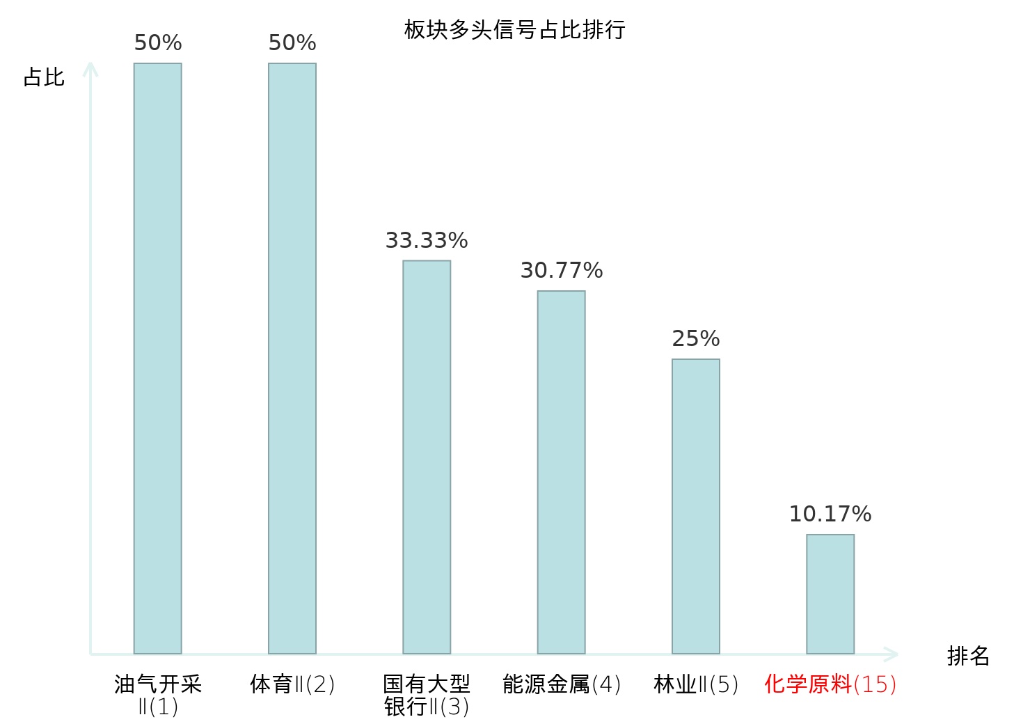 全市场所有行业板块中主力多头信号占比排名中,油气开采Ⅱ板块位居第一。体育Ⅱ板块名次提升最快,较昨日上升129位。